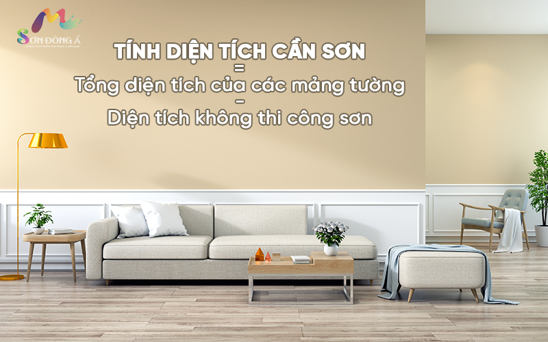 Đây là tổng diện tích của tất cả các mảng tường trong nhà (tường phòng khách, phòng ngủ, hành lang…). Khi tính diện tích, bạn cần trừ đi những phần không sơn như: cửa ra vào, cửa sổ, tủ âm tường hoặc những khu vực được ốp lát bằng vật liệu khác.