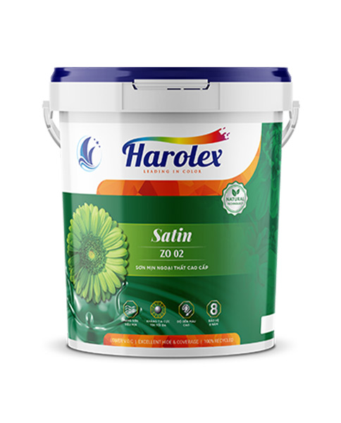 HAROLEX Satin ZO 02 là loại sơn 100% nhựa acrylic hệ nước dùng để sơn phủ ngoài trời chất lượng cao, đã hoàn toàn nhiệt đới hóa rất phù hợp với khí hậu Việt Nam. Với công nghệ tự làm sạch” tiến tiến. Dễ thi công, khô nhanh, bề mặt sơn mịn màng, bền, đẹp, có màu sắc đa dạng, chất lượng ổn định luôn phù hợp với mọi kiến trúc xây dựng. Có độ phủ cao (12 – 14 m2/lít).