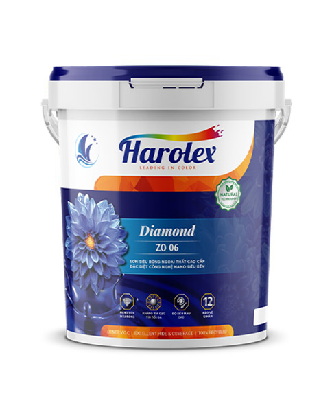 HAROLEX DIAMOND ZO 06 Là loại sơn sử dụng nhựa Acrylic mang tính đột phá mới – công nghệ NANO. Đây là loại sơn siêu bóng ngoại thất , có độ phủ cao (15m2/lít) màu sắc phong phú, hoàn toàn, cao cấp với hàng nghìn màu sắc đẹp. Bề mặt hoàn thiện cao cấp với hàng nghìn màu sắc đẹp. Bề mặt hoàn thiện bảo vệ tường cho những công trình cao cấp.